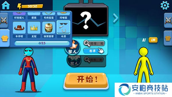 2.武器 + 技能策略组合:从三叉戟(范围攻击)、灭霸手套(大招秒杀)、激光剑(高攻速)等奇葩武器中选择趁手装备,搭配 “旋风腿 + 升龙拳” 等技能组合,依据对手格斗风格动态调整战术,实现 “武器特性 × 技能连招” 的策略压制。