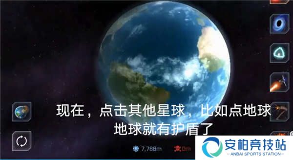3、再用陨石撞击,撞出坑再重置行星,一般重复砸陨石然后重置行星3到5次就有护盾了,点击其它星球,比如地球,然后地球就会出现护盾了。
