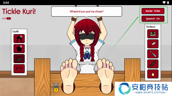 3、在右上角可以通过【mode】切换当前挠痒痒模式,分别是挠痒痒、调情模式,【speech】可以关闭游戏语音;