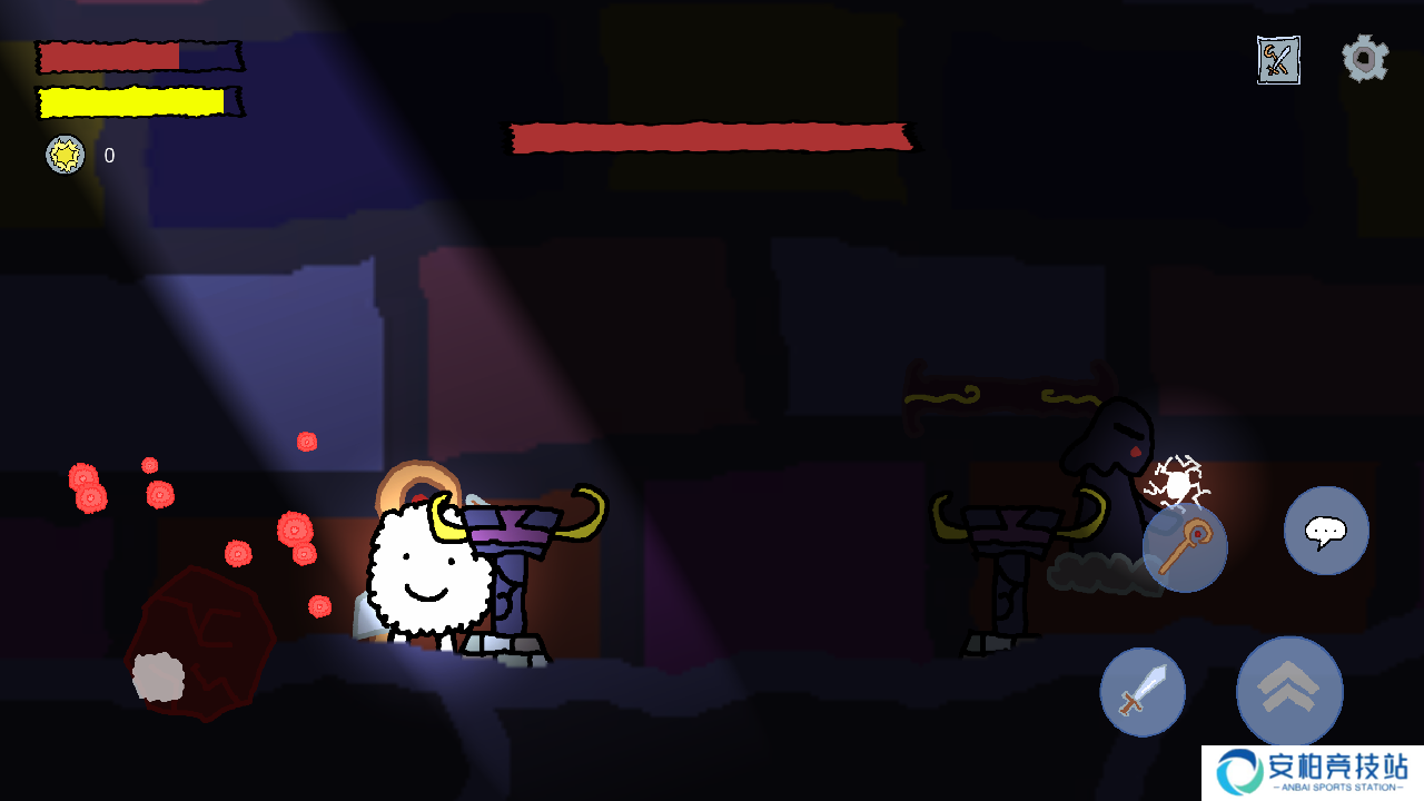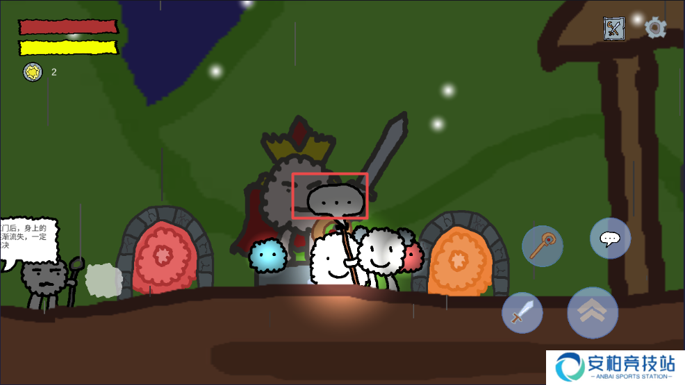 悠姆的光之历练内容:1、开始游戏之后,可以看到左右两边的操作按钮,来控制自己的角色展开行动并且发起攻击;