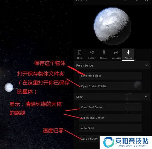 Moction选项中,主要调节运行轨道和移动速度,也可以锁定星体等