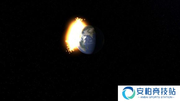 星球级别壮观、震撼的相撞,并留下一个巨大的熔融撞击坑。