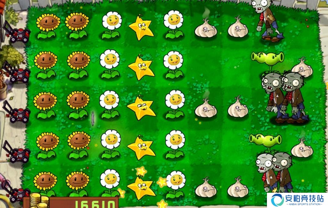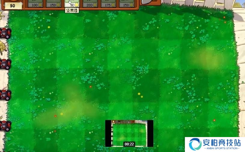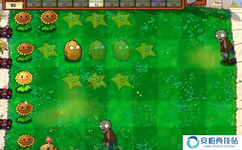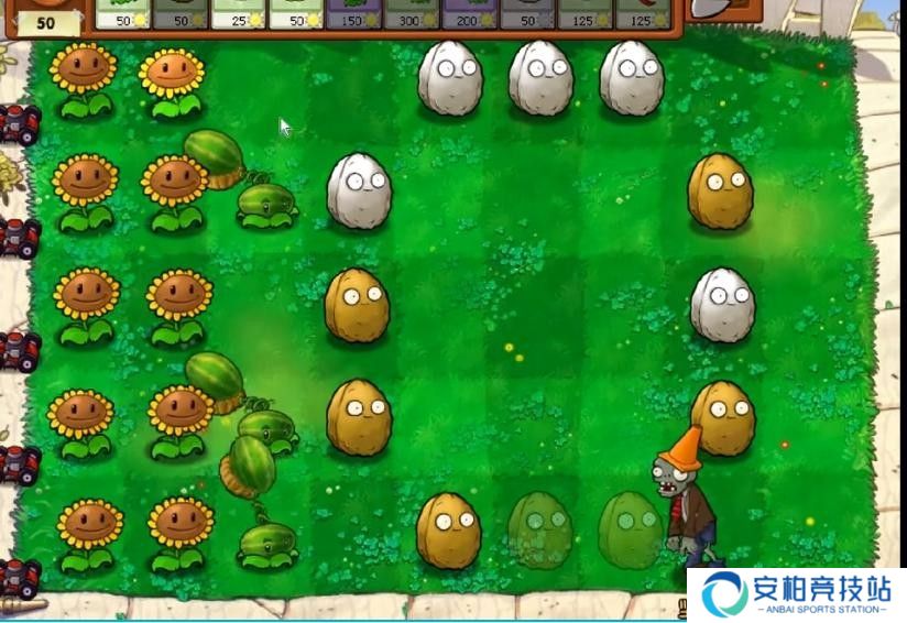 1、坚果保龄球、艺术锦标赛:选择植物时复制坚果,阻止僵尸的同时用坚果墙填满所有的外线区域就可以过关了。