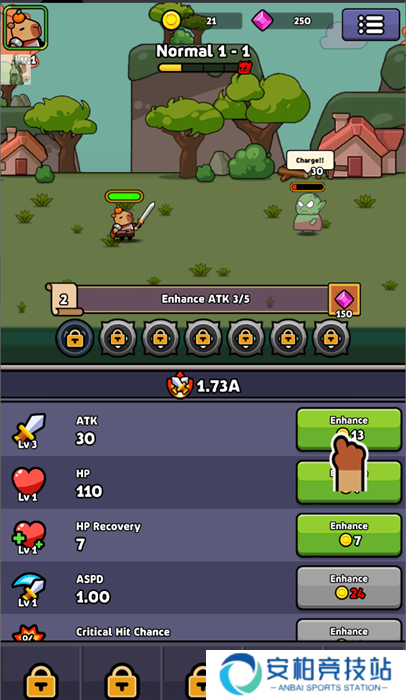 2、来到游戏的挑战关卡,角色能够自动攻击怪物击杀;