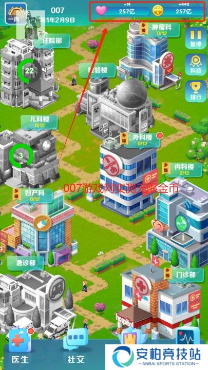 游戏简介:玩家从一座空医院开始,慢慢经营自己的医院,为自己的医院不断的去添加各种各样的医疗设备,同时需要去雇佣更多的高级医生,逐步提升等级,成为世界上最强的医院。