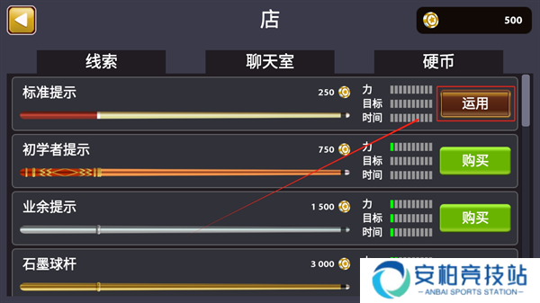 3、购买之后再点击【运用】即可切换当前的球杆。
