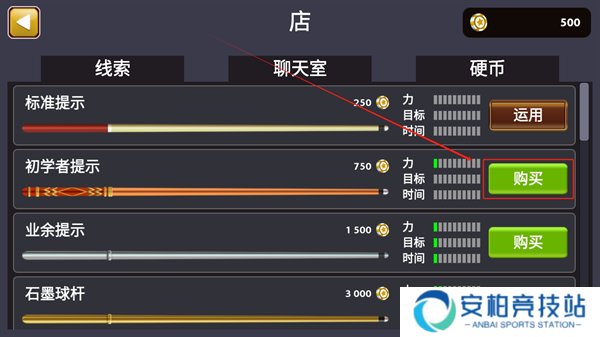 2、然后在商店中找到你想要解锁的球杆,点击右侧的【购买】按钮;