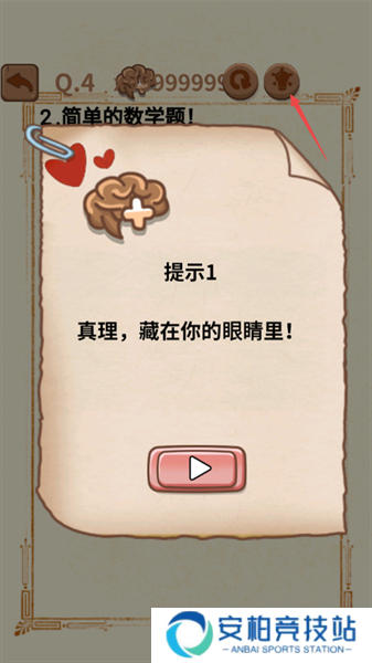 2、面对没有头绪的问题时,可以点击画面上的提示来获得帮助;