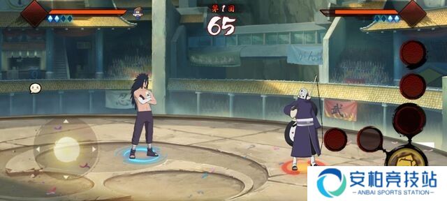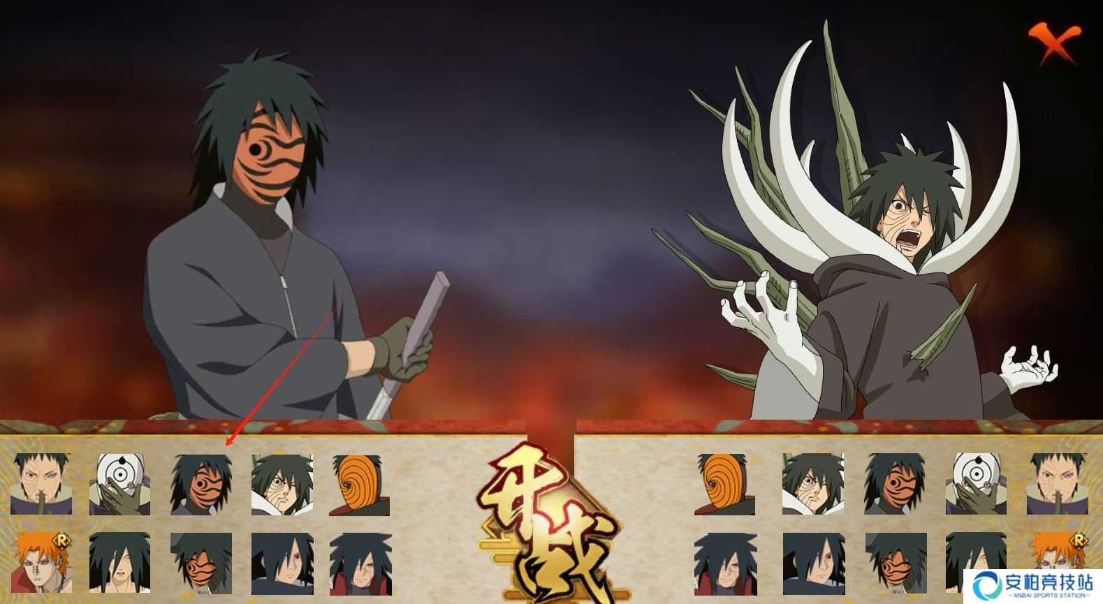 3、在屏幕下面有很多熟悉的忍者角色人物选择,点击选择好忍者角色点击中间开战就可以对战了!