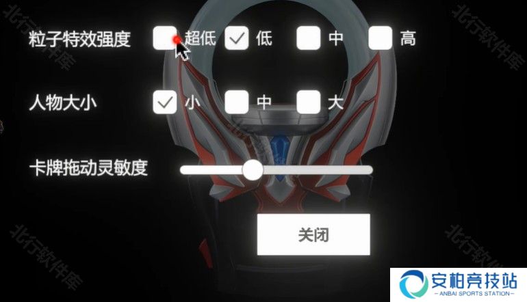 2、可以调整粒子特效强度、人物大小、卡牌拖动灵敏度,建议根据手机情况调试。