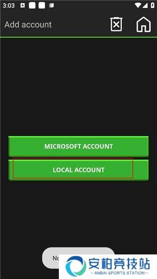 8、当我们点击启动游戏时会进入此界面,这是告诉我们没有账户,我们点击“LOCAL ACCOUNT”创建账户;