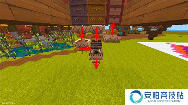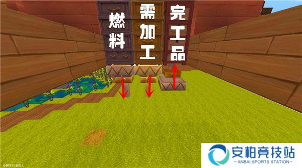3、放置漏斗+熔炉(如图)注意放置位置: